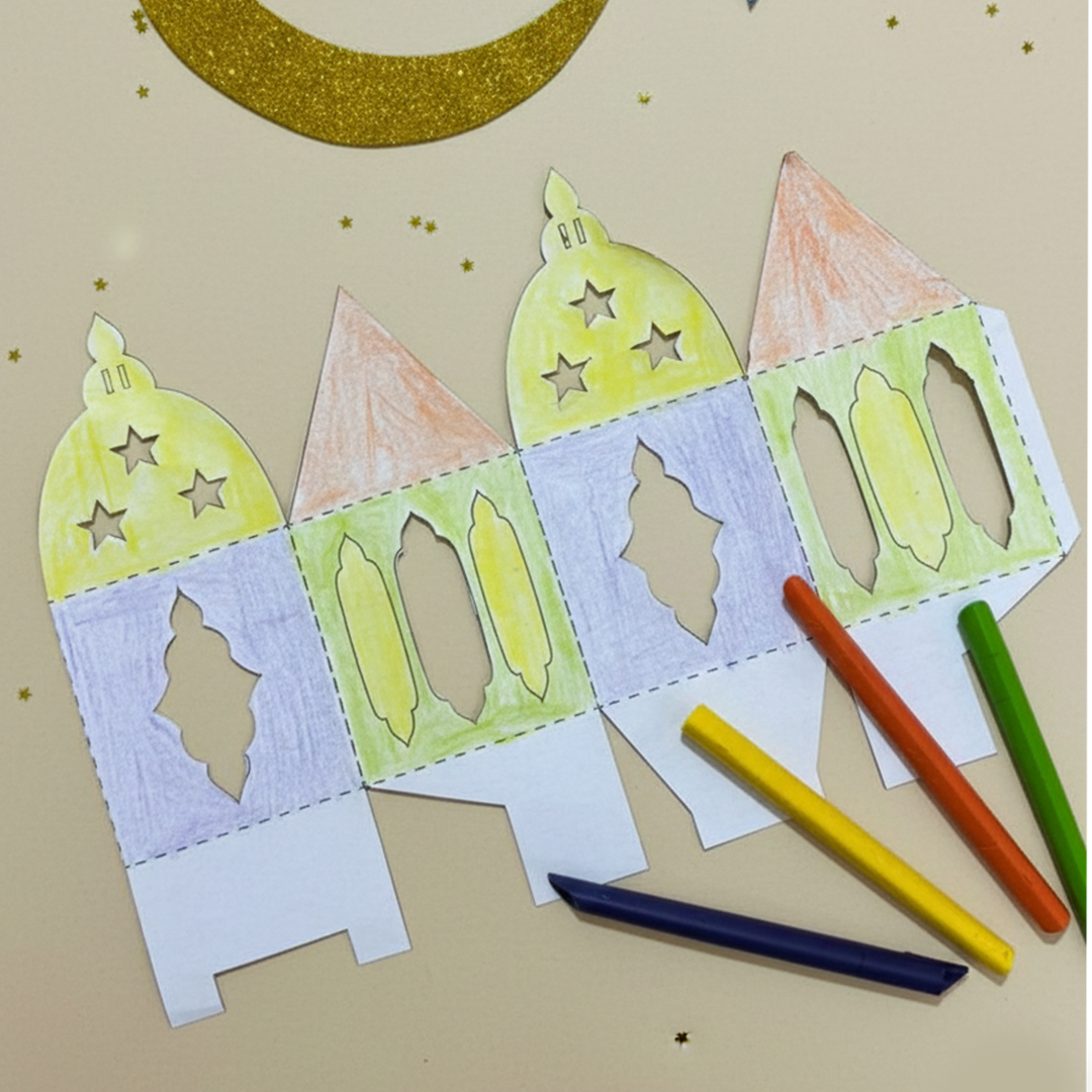Ramadan is a time for reflection, sharing and meaningful moments with loved ones. This creative activity invites children and families to craft their own lantern and add a warm, festive glow to their home, classroom or iftar table. Follow the step-by-step tutorial to make the main lantern design. Get your tools ready and celebrate the joy of creating together.