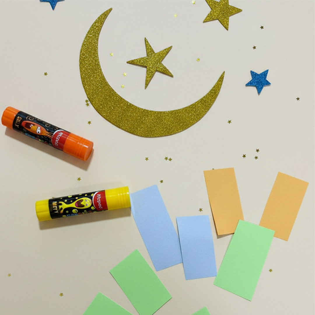 Final Result: A Ramadan lantern that is safe for children, perfect for decorating the home, the classroom or the iftar table, and easy to personalise with glitter, calligraphy or stickers to make it truly unique.