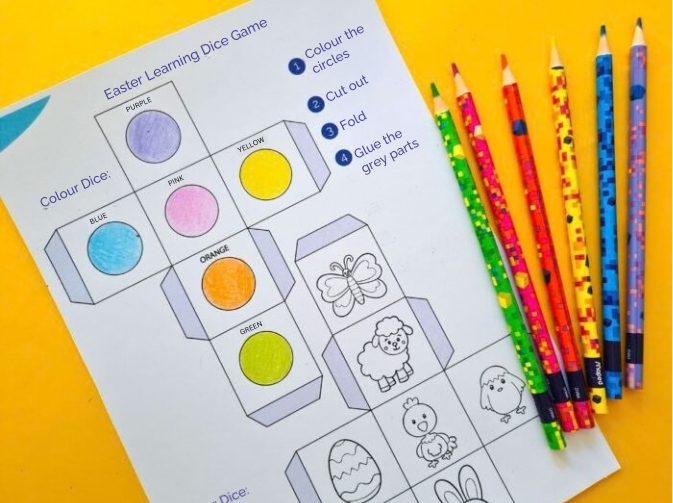 Easter Learning Dice Game: A Fun DIY Activity for Kids to Learn Colours and Animals