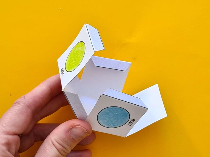 Repeat to make both dice: one colour die and one animal die.
