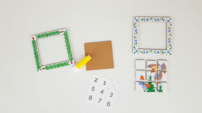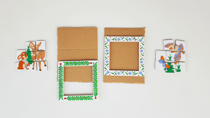 Now to cut the puzzle pieces. Carefully cut out the frame and individual puzzle pieces. Ask an adult to help you cut out the frame.