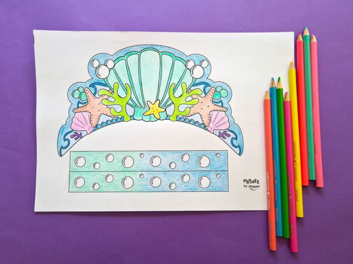 Dive into a magical world and let yourself be enchanted by the magic of the ocean with Maped! With our mermaid crown to decorate, you can express your creativity and create a sparkling accessory that will perfectly complete your mermaid transformation.