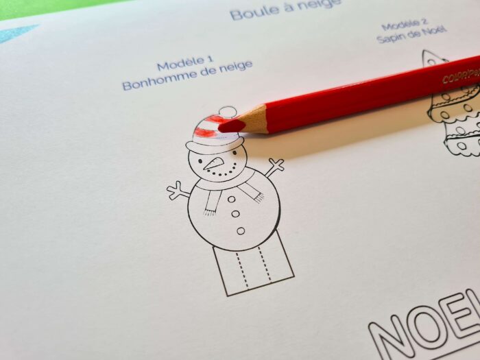 Get creative and colour the snowman, tree, and “NOEL” with your favorite colours.