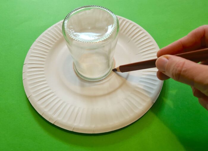 On your paper plate, cut out a circle that’s the same shape and size as your yogurt pot.