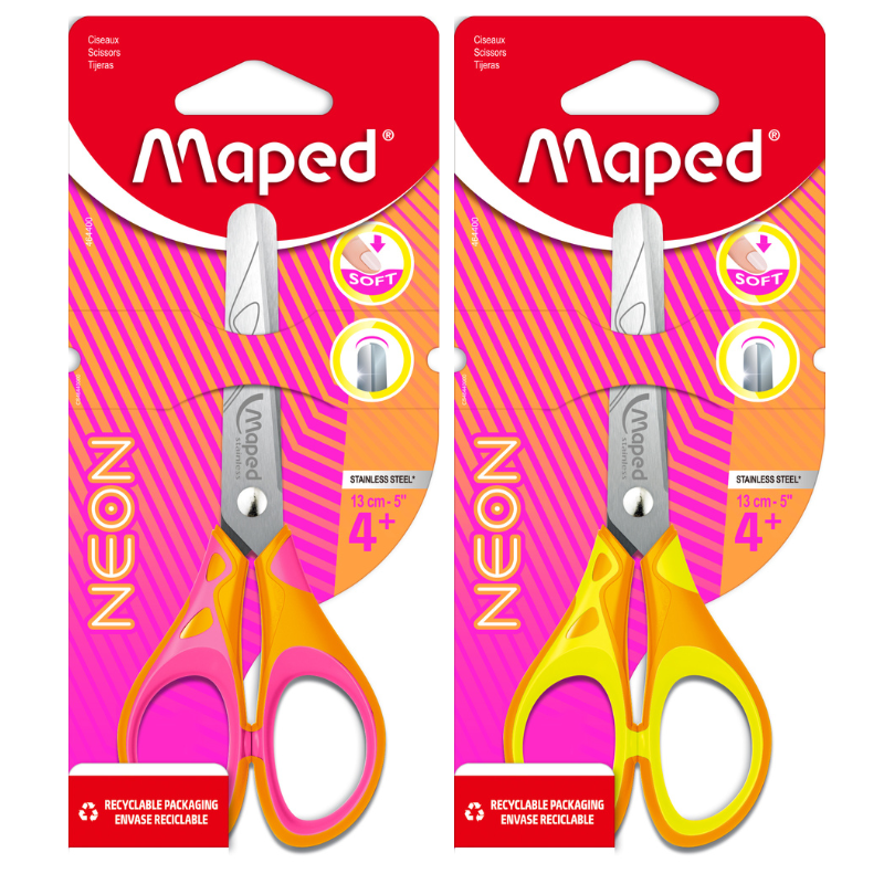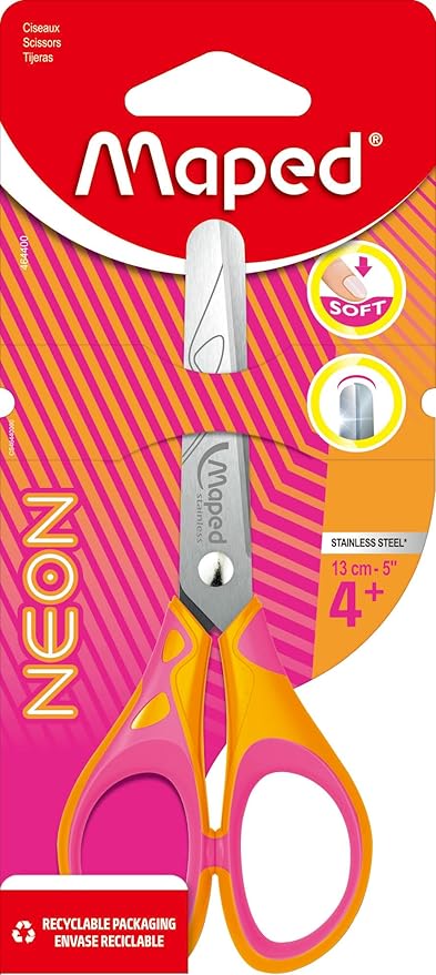 The MAPED Essentials Pulse Soft Neon Scissors are designed to make cutting fun, easy, and safe. With a vibrant neon colour and an ergonomic, bi-material handle, these scissors ensure comfort and control, making them ideal for school projects, crafts, and everyday use.