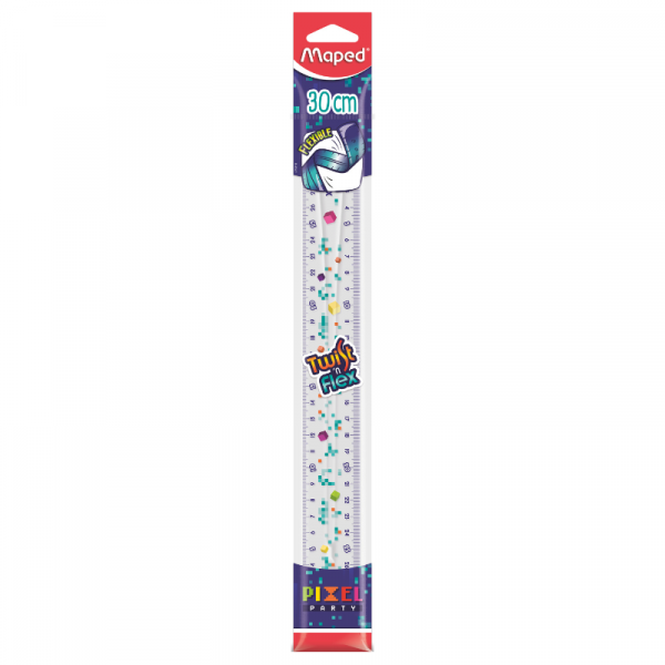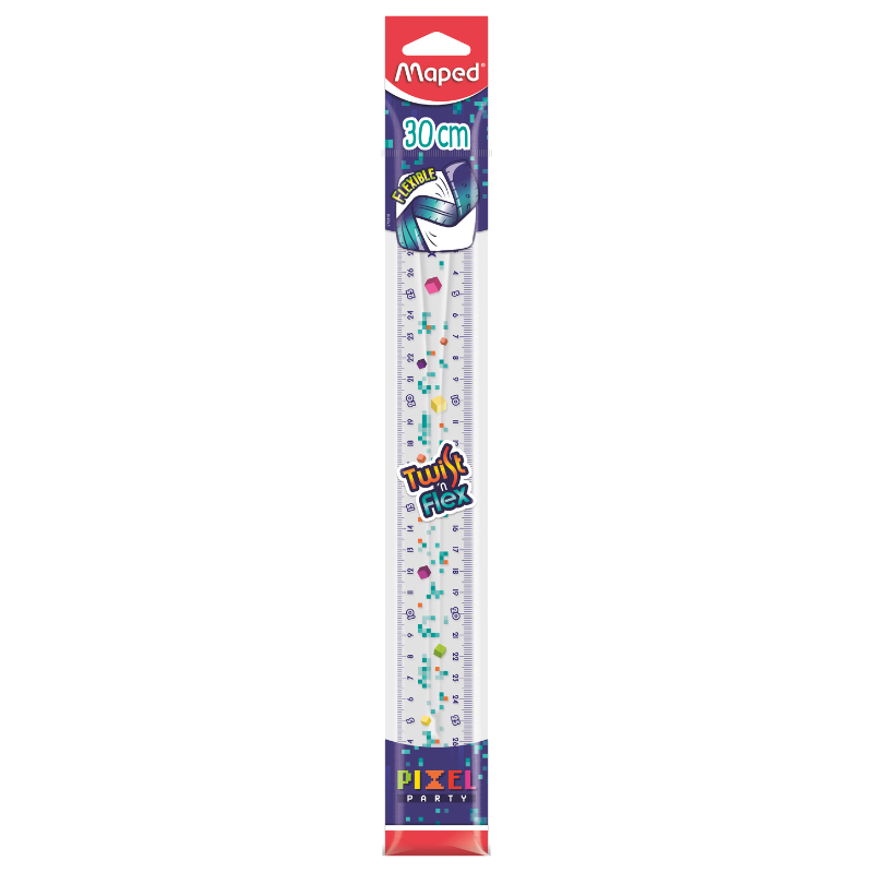 Maped Pixel Party Twist’n Flex Ruler – 30cm Flexible Plastic Ruler, Shock-Resistant, Double Graduation
