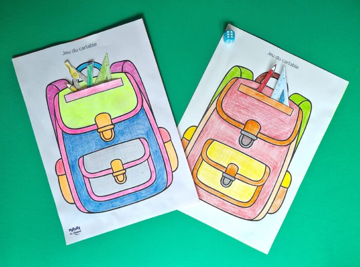 And that’s it, you’re ready to play! Take turns rolling the dice and filling your schoolbag. The first player to fill their bag wins.