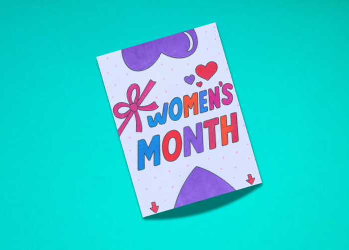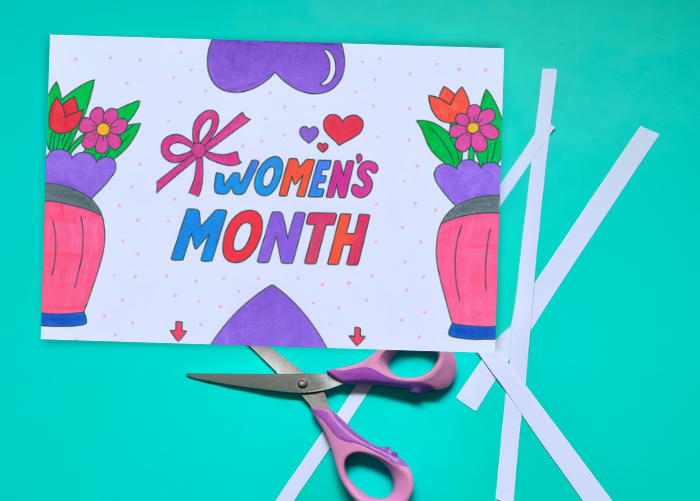 Cut out a rectangle, write a kind Women’s Month message, and place the little hearts on top. You can also add a photo if you like!